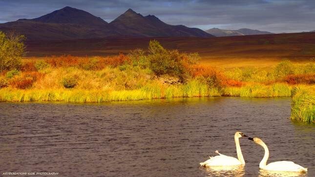 Мы поехали дальше. Повеяло легким арктическим ветерком. Во всей красоте сияющего северного солнца стоял теплый предосенний день. Осенью в этих местах иногда бывает бабье лето. Мы подъезжали к устью Эльдорадо, в Бонанзу, я свернул немного вправо к   маленькому озерцу. Мы остановились и вышли, чтобы посмотреть на него. Поверхность воды слегка покрылась рябью от ветерка и сияла на солнце, как изумруд. Было тепло, и я предложил искупаться: