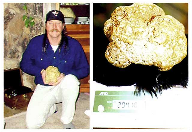 Самородок «Столетие Аляски» весом 294,1 тр. унций (9148 г), найденным на реке Свифт-Крик недалеко от Руби на Аляске и Барри Клэй со своей находкой