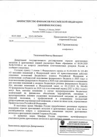Ответ Роснедр на письмо Союза старателей России (о проекте позиционного документа российских общественных организаций в отношении добычи россыпного золота) |